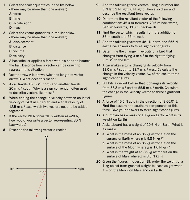 Vectors are the quantities defined by both magnitude and direction, such as displacement (move to right 3 m), velocity (20 m s-1 to east), acceleration, force (20N forward), momentum, and impulse.