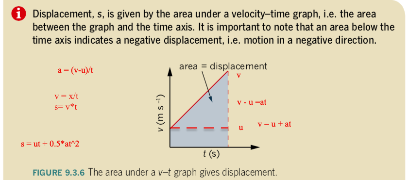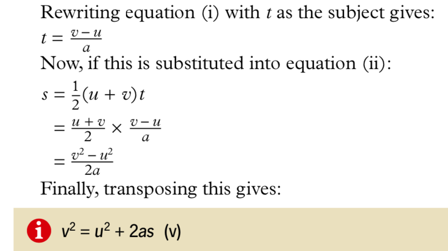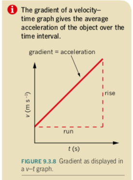 The average of acceleration is the change in velocity from the initial velocity (u) and the final velocity (v) over a period of time (t)