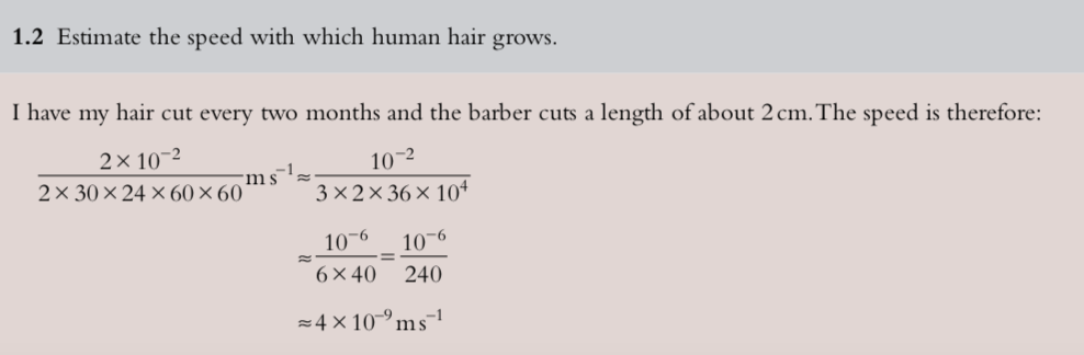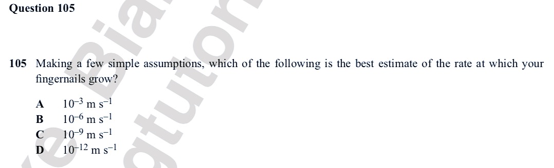 “Using a few reasonable estimates, what is the rate of growth of your fingernails in m/s.”